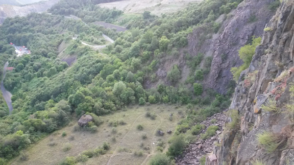 eines ehemaligen Steinbruchs bei Hochstätten-Dhaun hinausragt, haben Sie einen großartigen Ausblick über das Nahetal und den darunterliegenden Steinbruch..